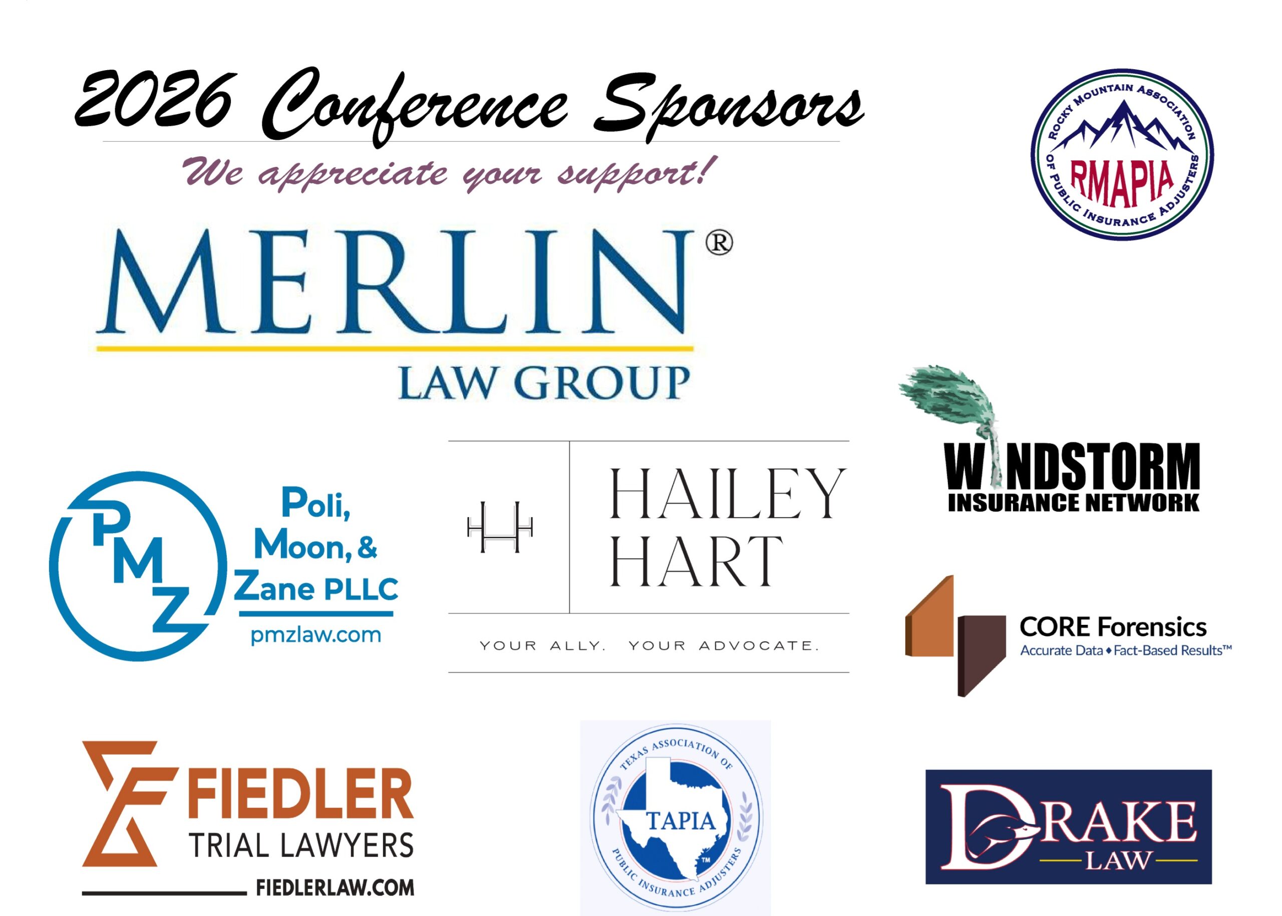 RMAPIA events are only open to Public Adjusters, approved Sponsors, and approved Vendors. If you would like to sponsor RMAPIA and/or participate in RMAPIA conferences and events, please visit our Annual Sponsorship page for details, or reach out with questions to director@rmapia.com.